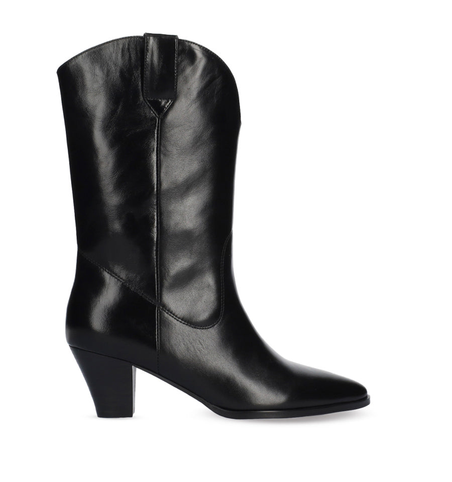 Bota 3/4 tipo cowboy de Bibi Lou en piel negro con puntera fina y caña en forma "V".