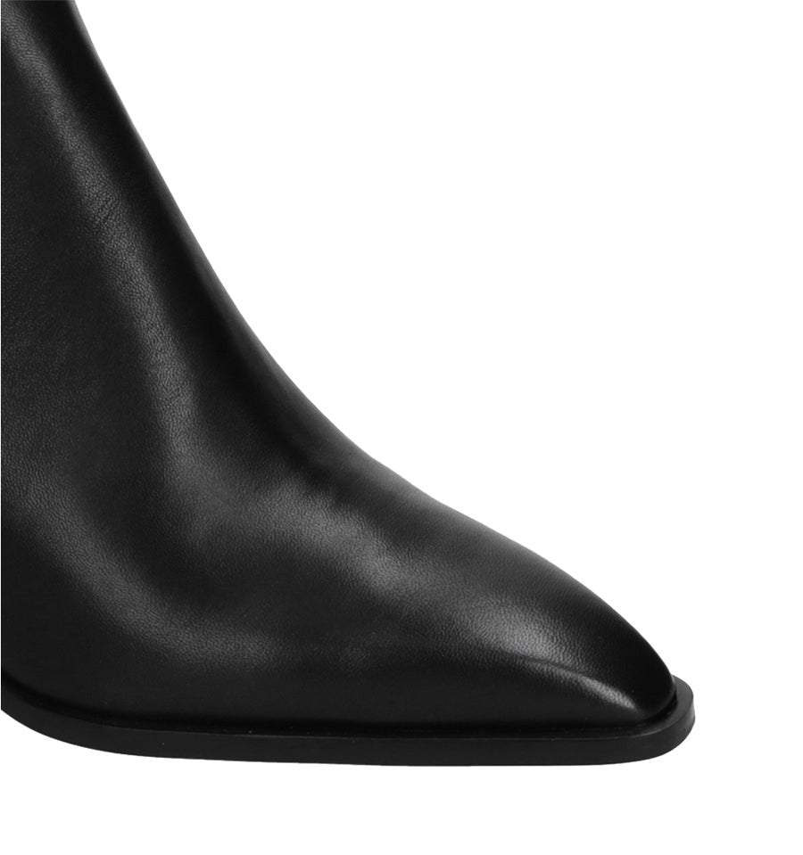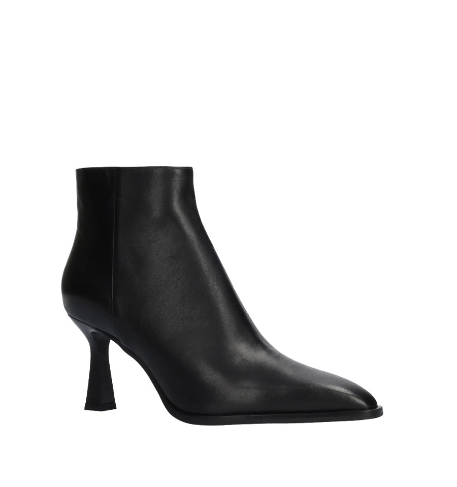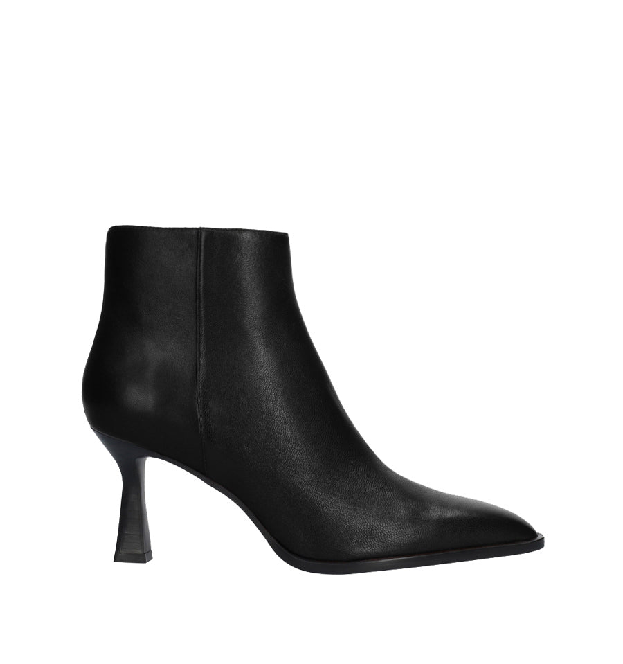 Botín liso estilizado de Lola Cruz en piel color negro con puntera fina y tacón medio/alto.