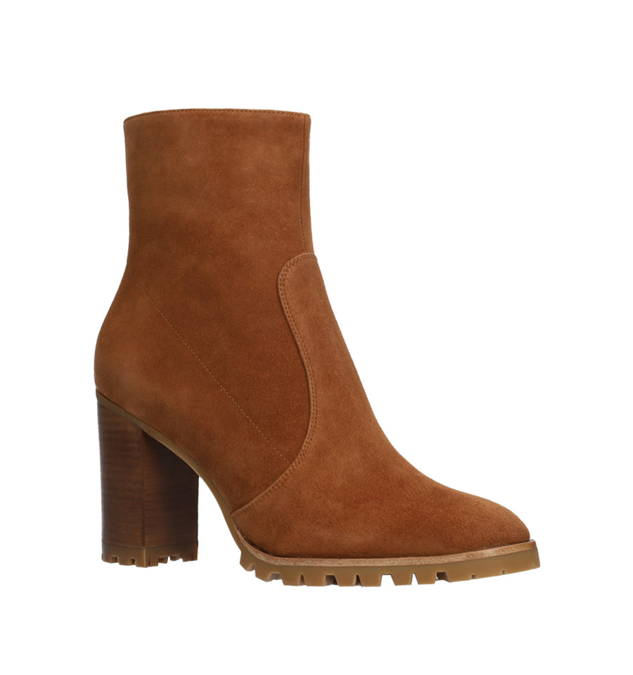 Botín liso de Lola Cruz fabricado en ante cuero con puntera redonda y piso track.