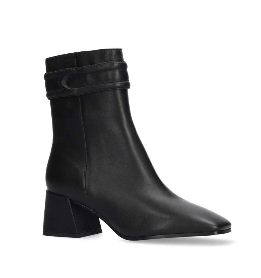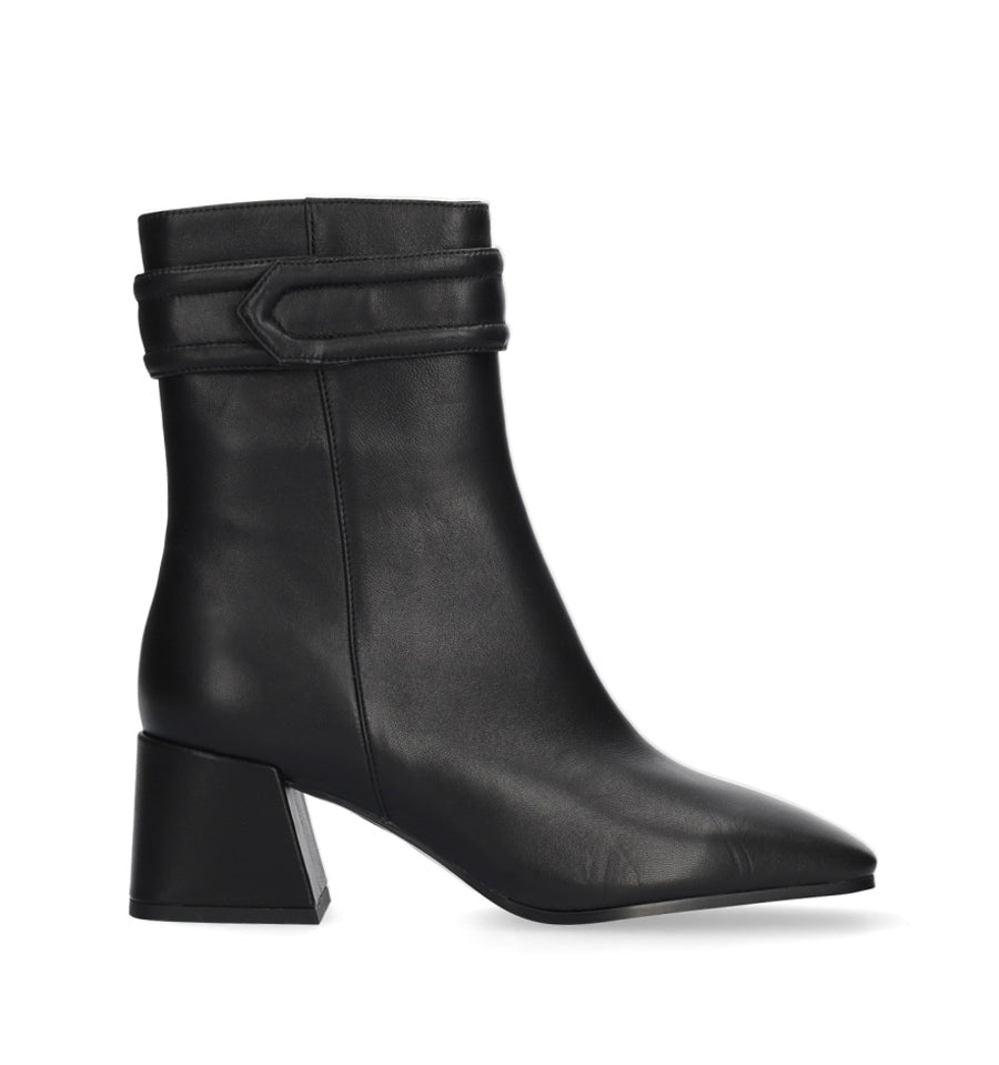 Botín de Bibi Lou en piel color negro con puntera cuadrada y detalle forrado en la caña.
