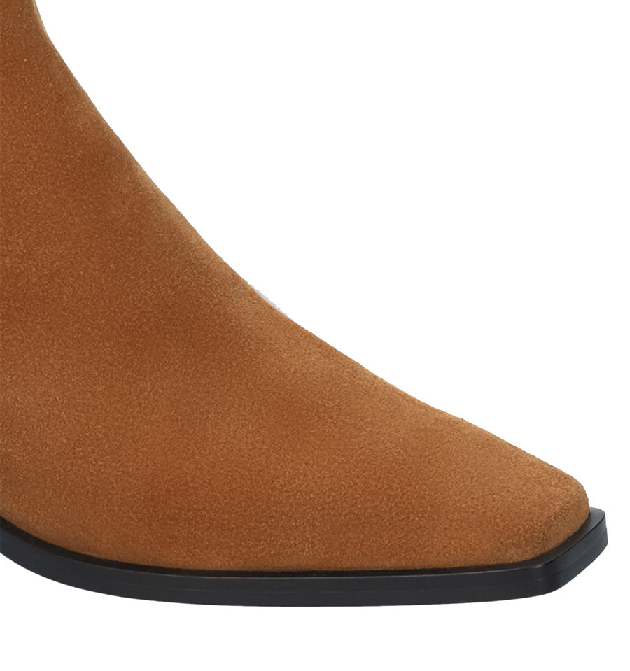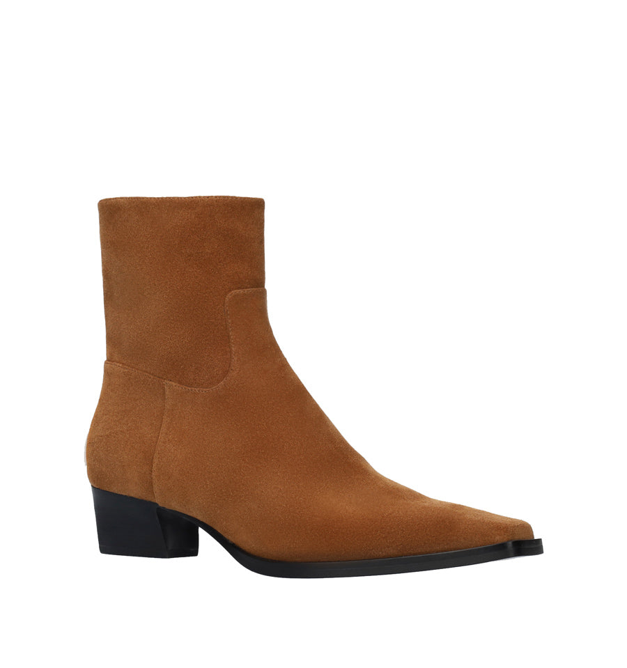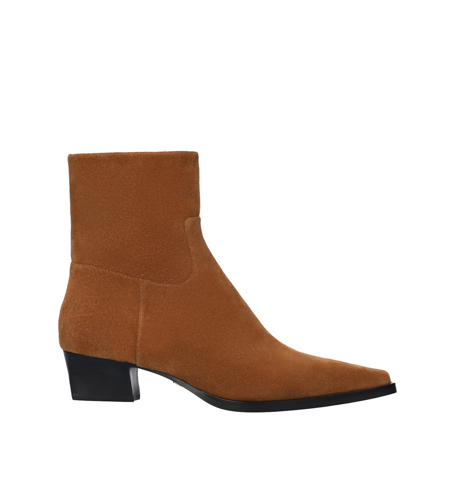 Botín liso tipo cowboy de Lola Cruz fabricado en ante cuero con puntera fina y tacón bajo.