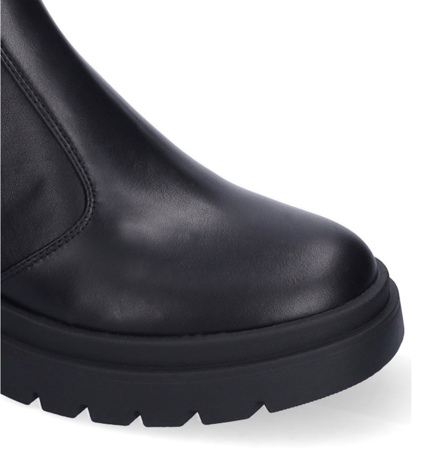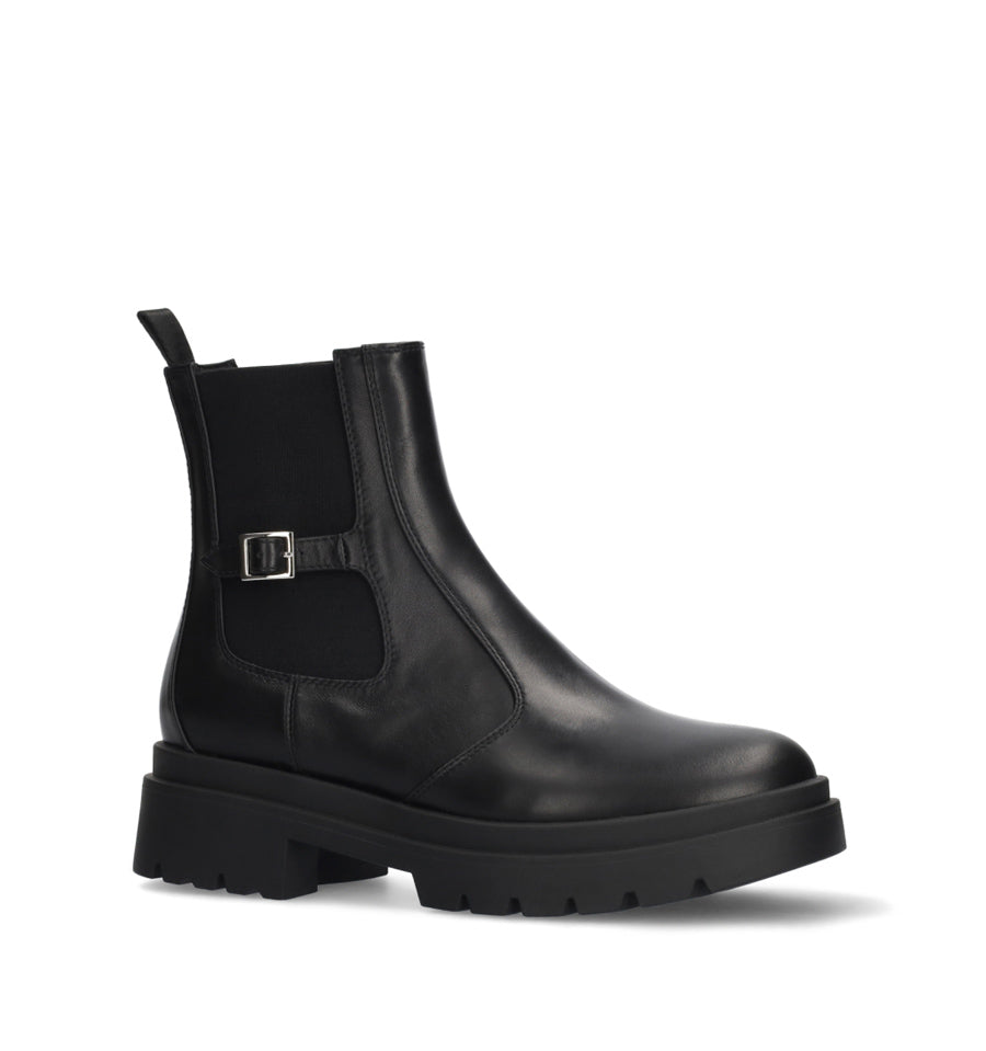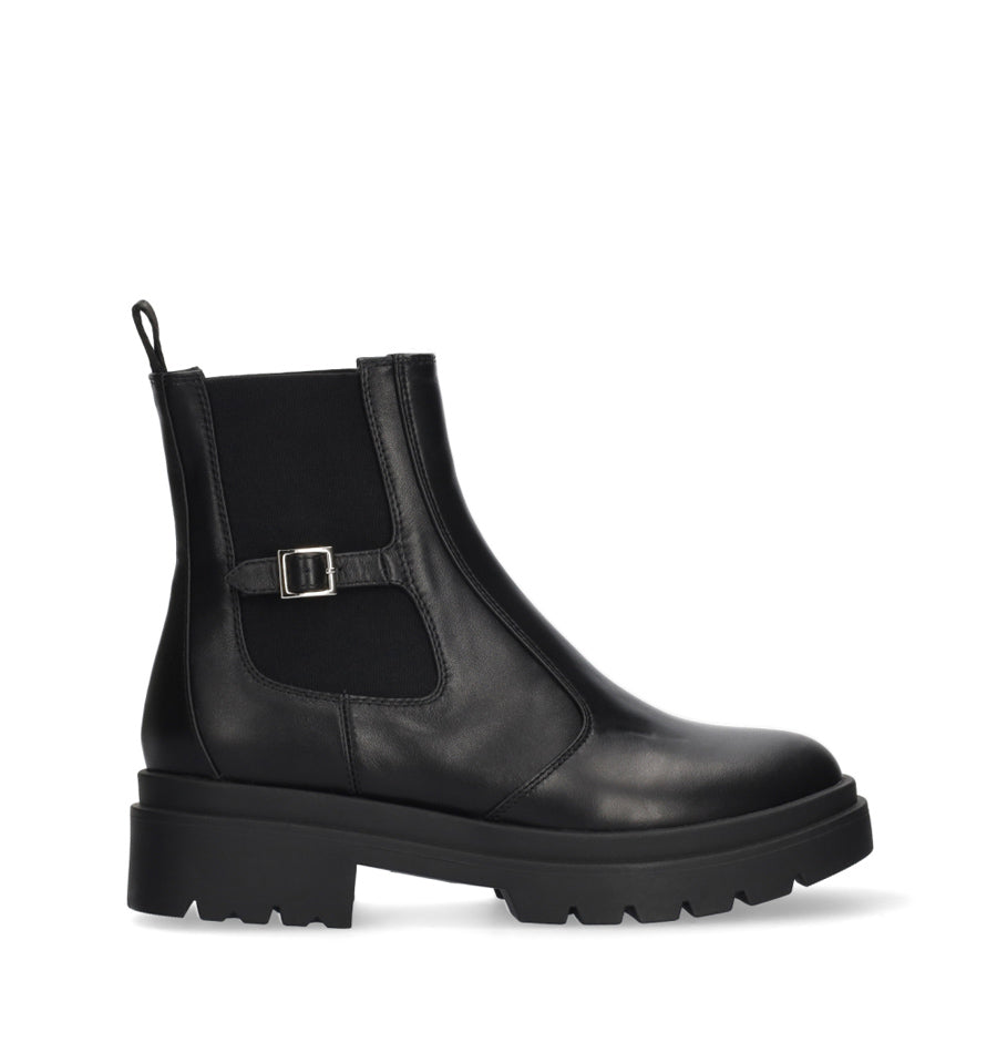Botín track de Bibi Lou en piel color negro con y hebilla elásticos laterales.