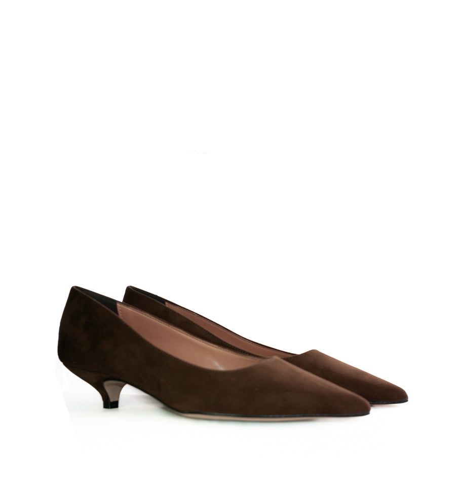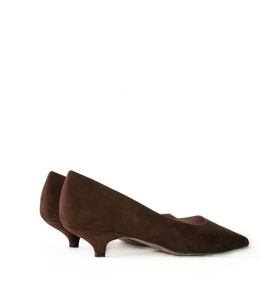 Salón de Divine Follie en ante color marrón con tacón kitty-heel.