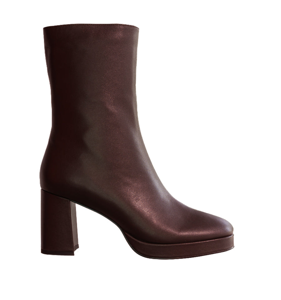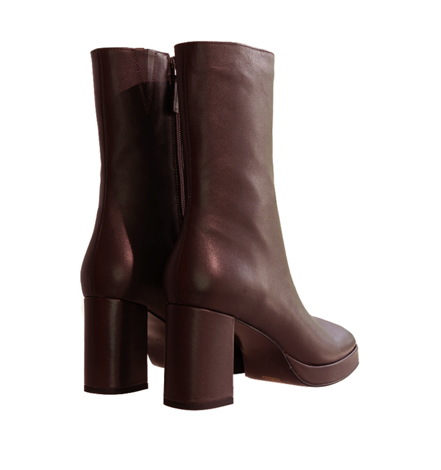 Botín con plataforma en piel marron