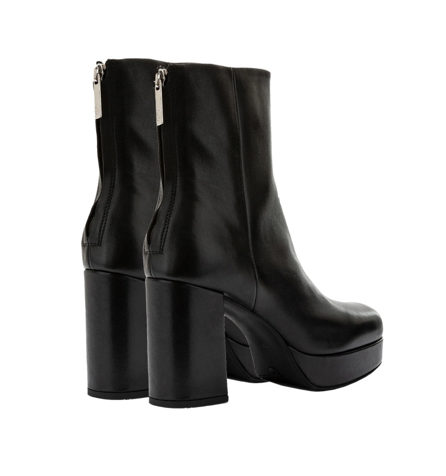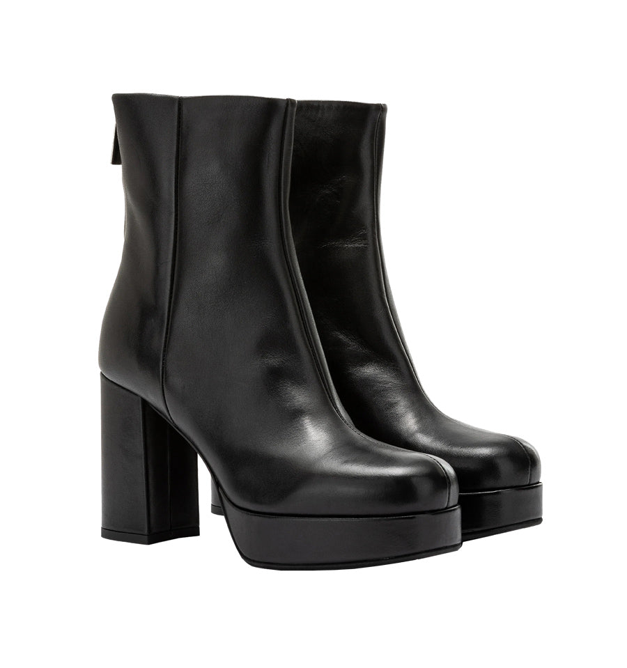 Botín de Carmens en piel color negro con plataforma, tacón gordo y puntera cuadrada.