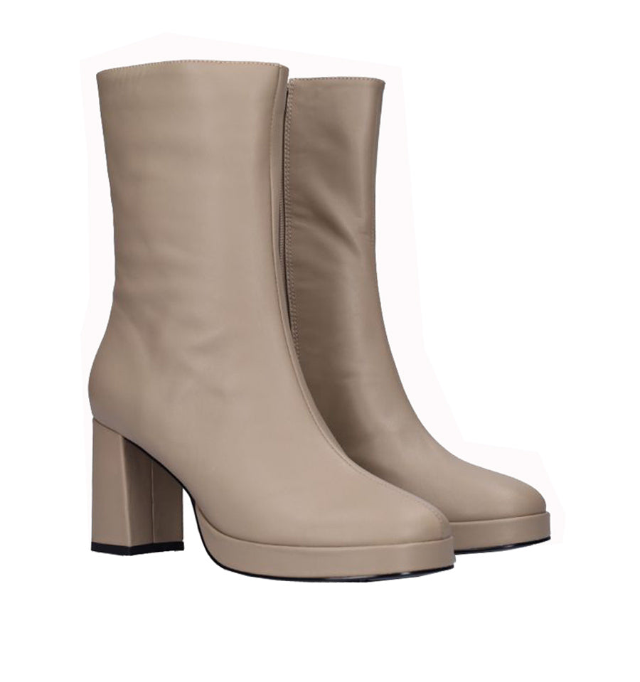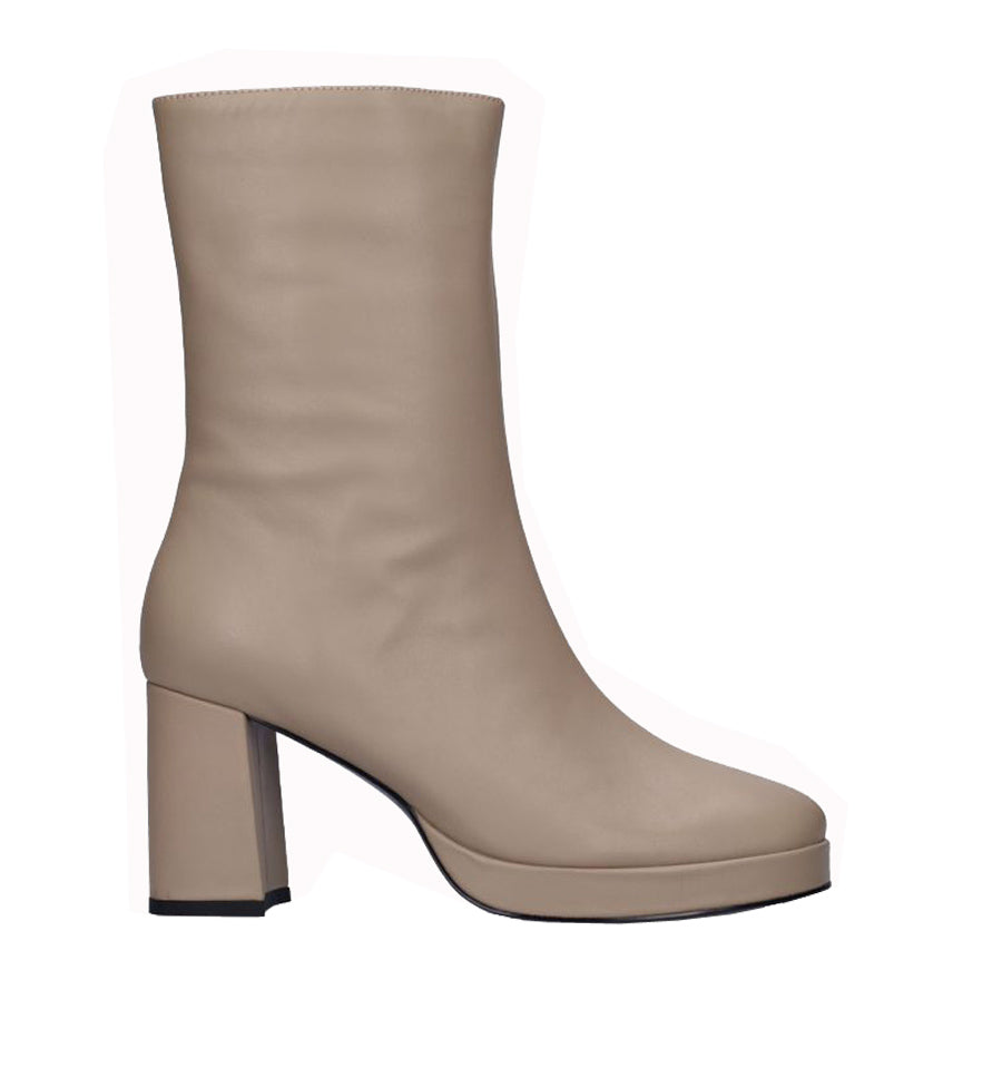 Botín con plataforma de Bibi Lou en piel color taupe con puntera redonda y forros en piel camel.