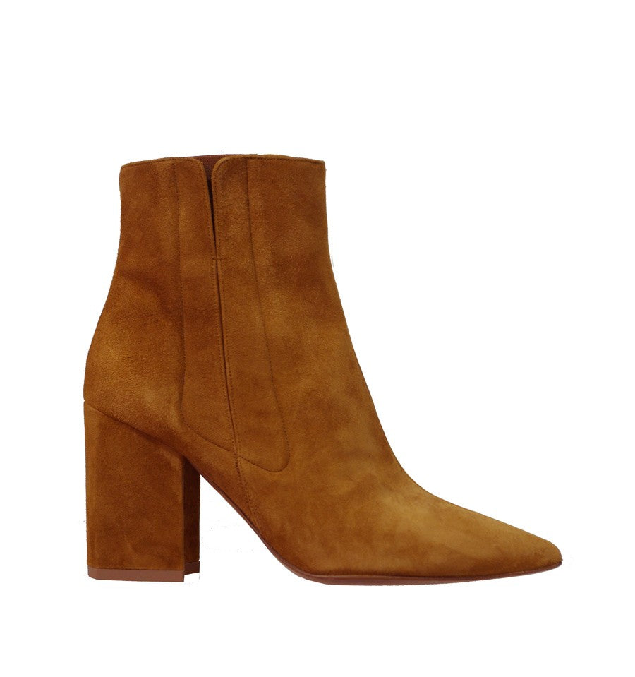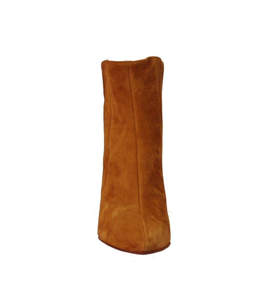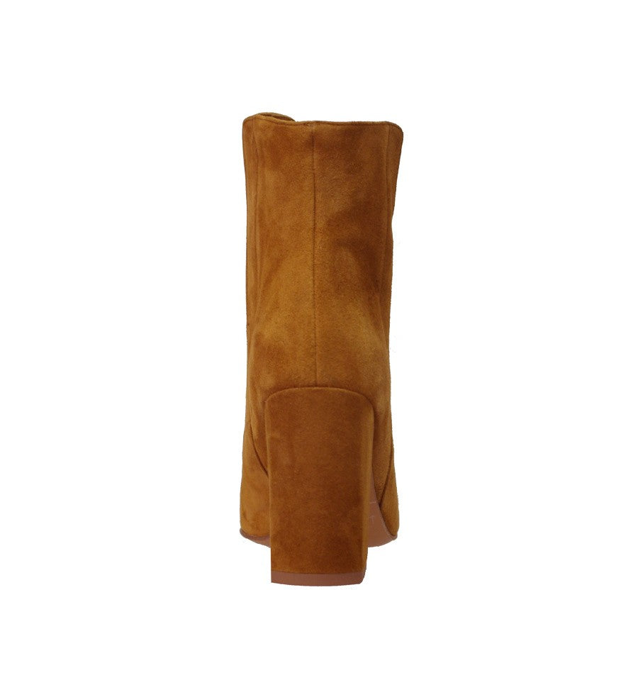 -Botín de Pura López en ante color cuero con elásticos ocultos laterales y tacón gordo.