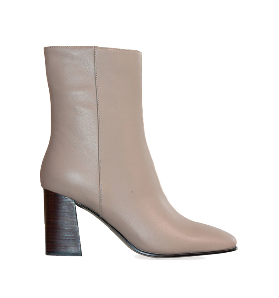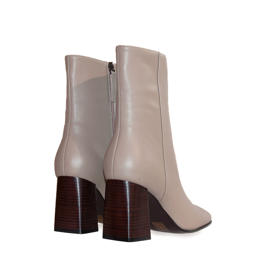Botín puntera cuadrada en piel taupe