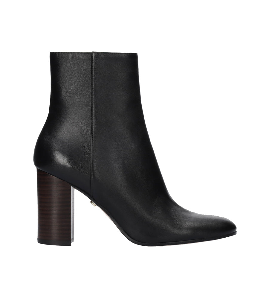 Botín de Lola Cruz en piel color negro con tacón gordo medio/alto y puntera redonda.