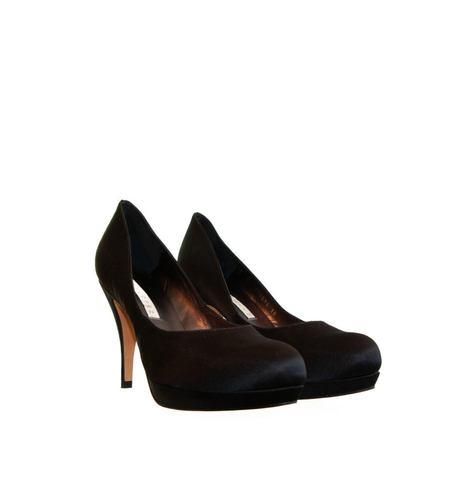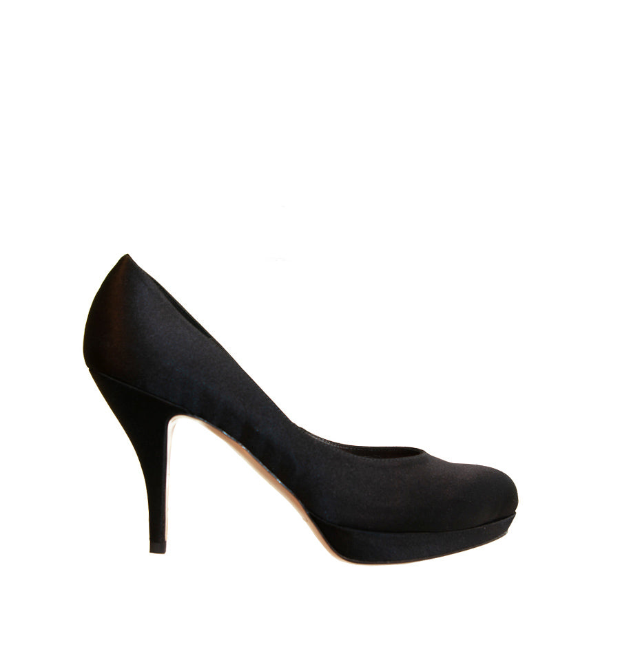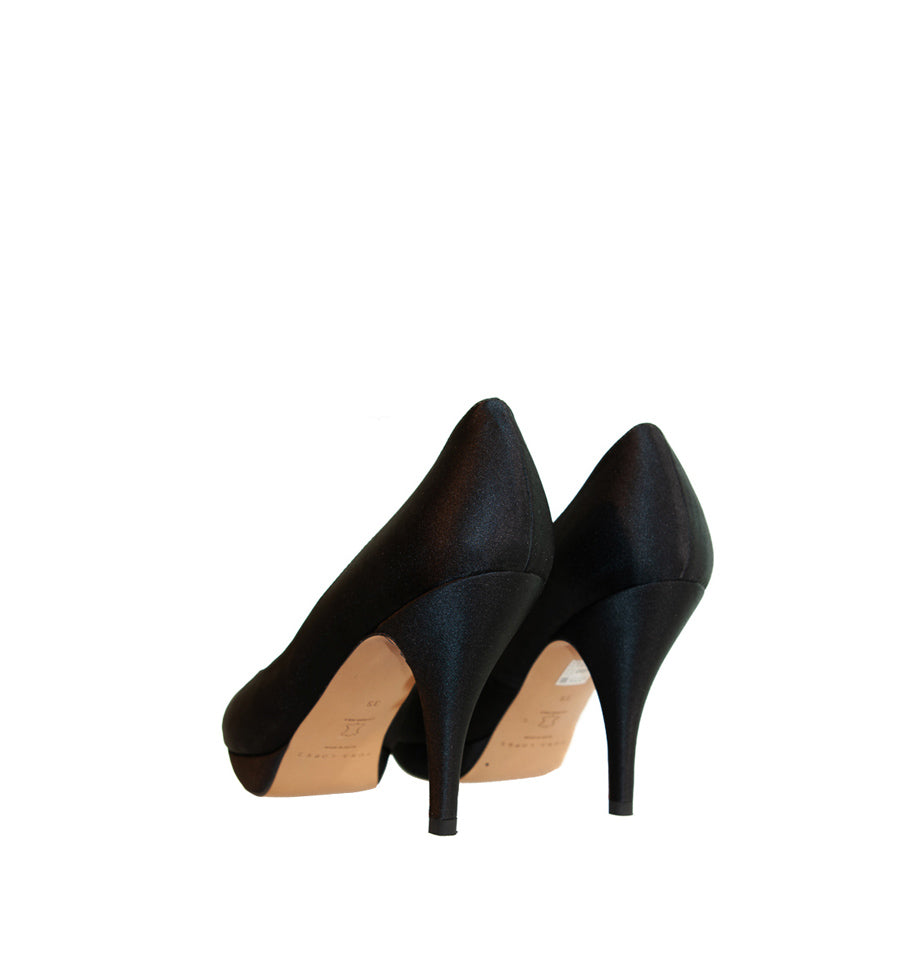 Zapato salón de Pura Lopez fabricado en raso color negro con plataforma.