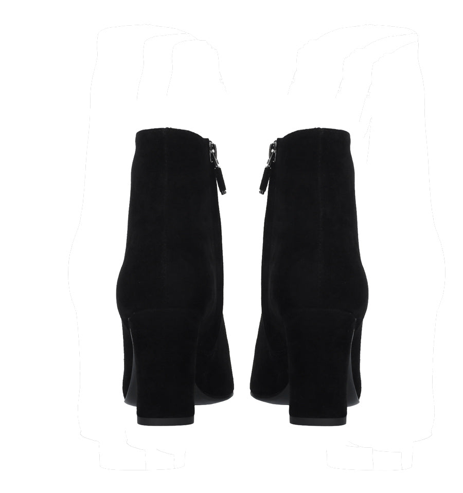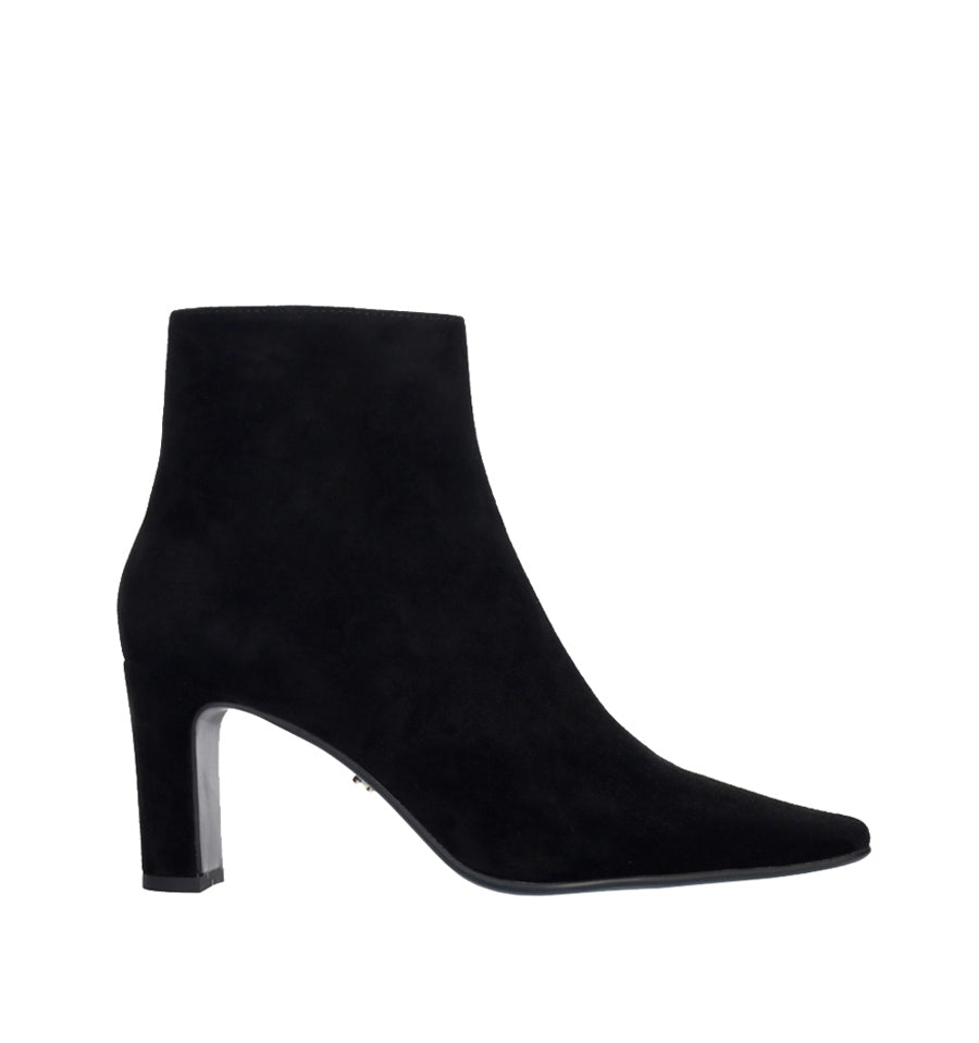 Botín de Lola Cruz en ante color negro con puntera almendrada y tacón medio/alto.