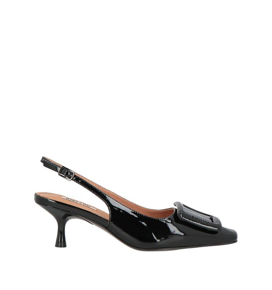 Destalonado de Bibi Lou en charol color negro con gran hebilla forrada.