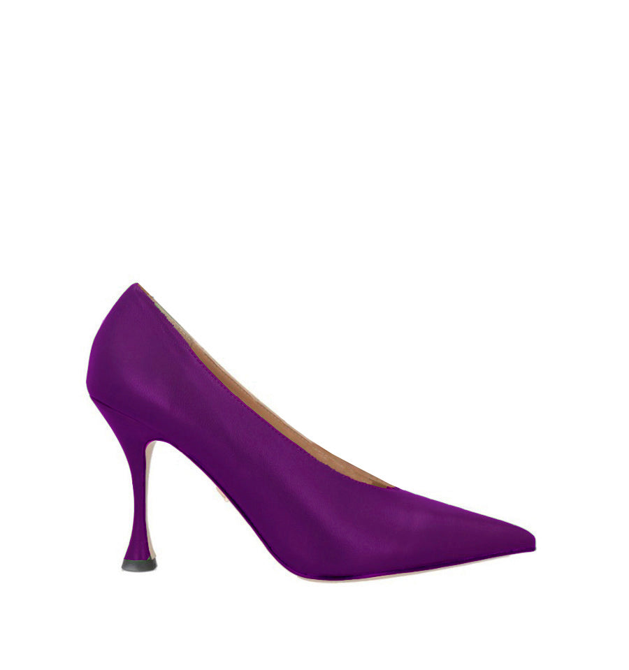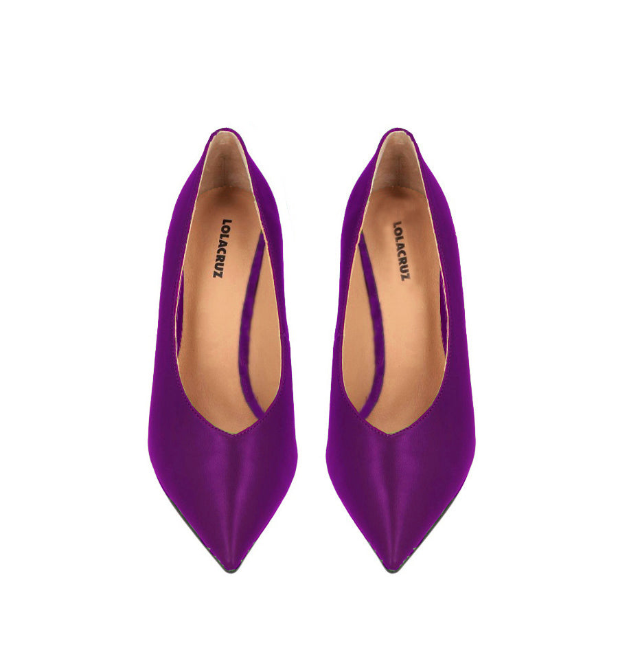 Salón stiletto de Lola cruz en piel color morado con escote "V" subido.
